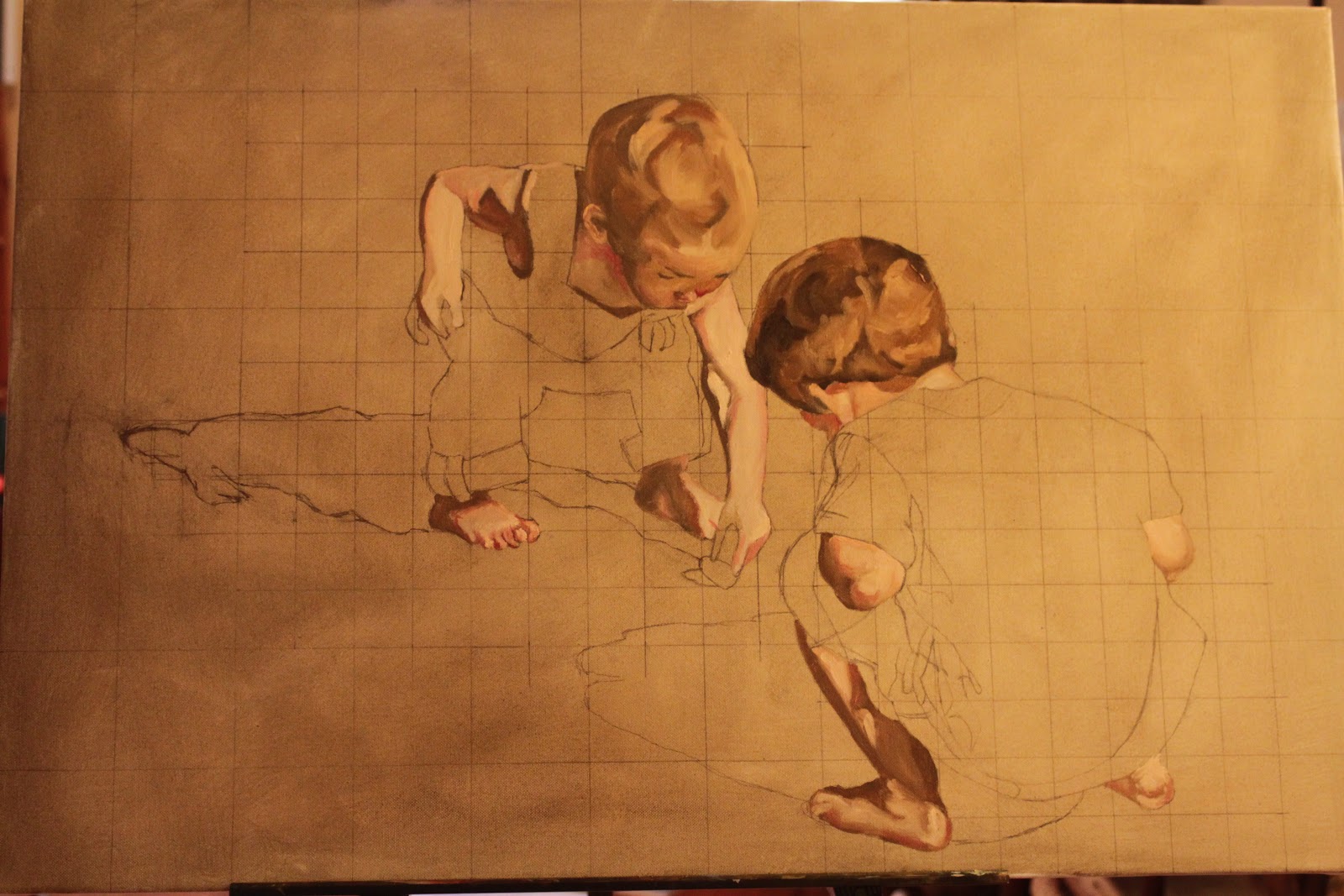 I also started laying out a 24" x 36" canvas for the babes in a tide pool painting, that I had hoped to paint while in Florida.